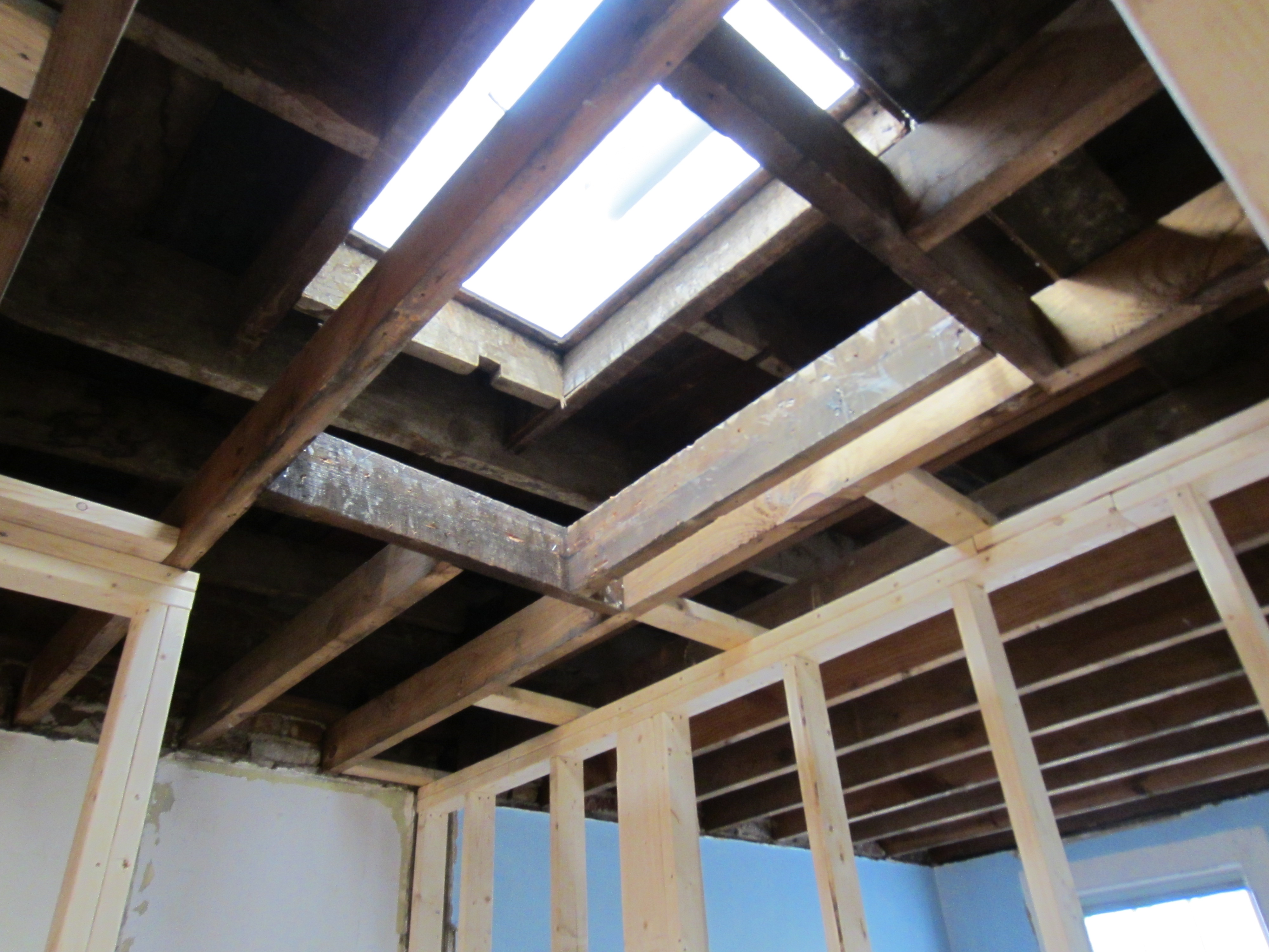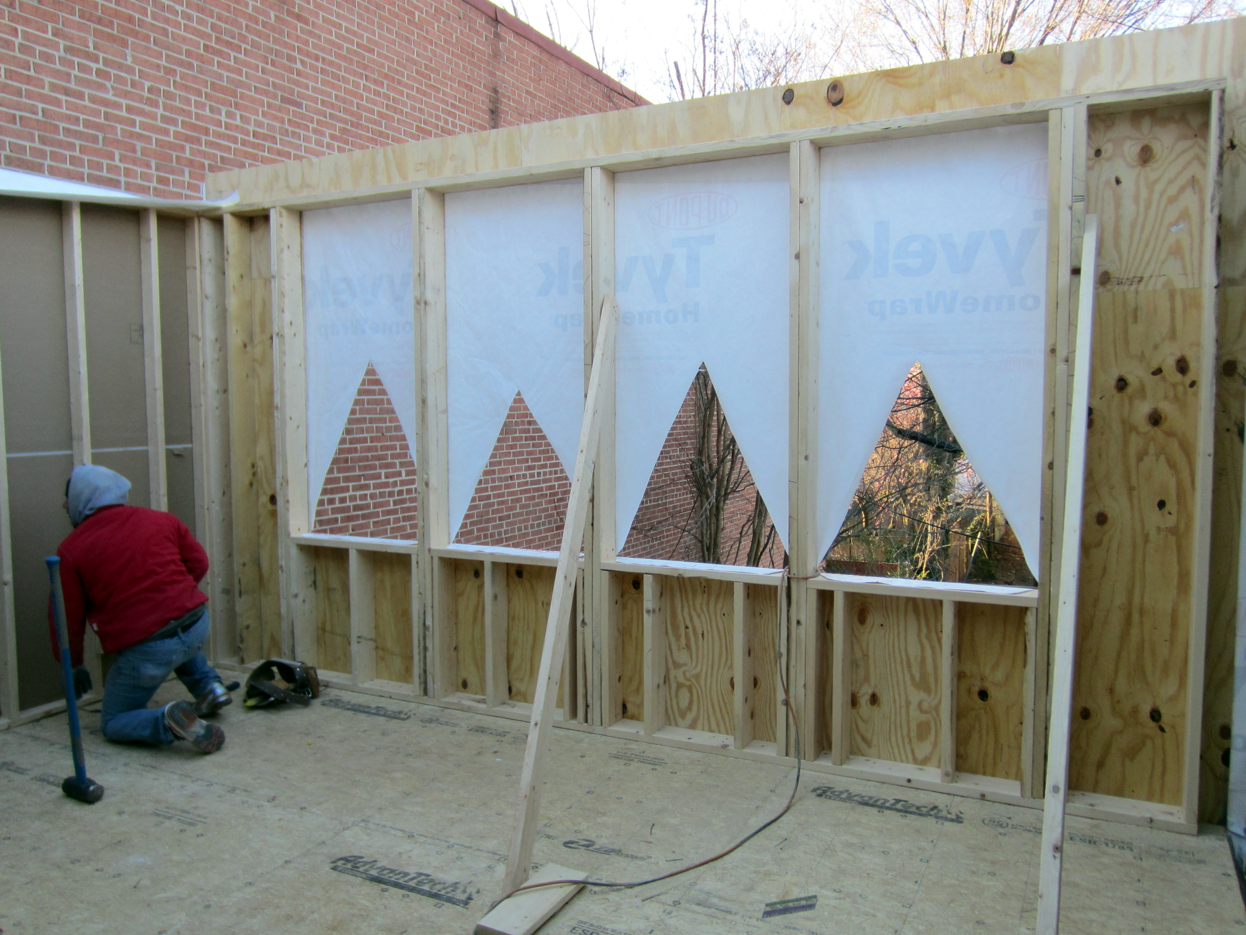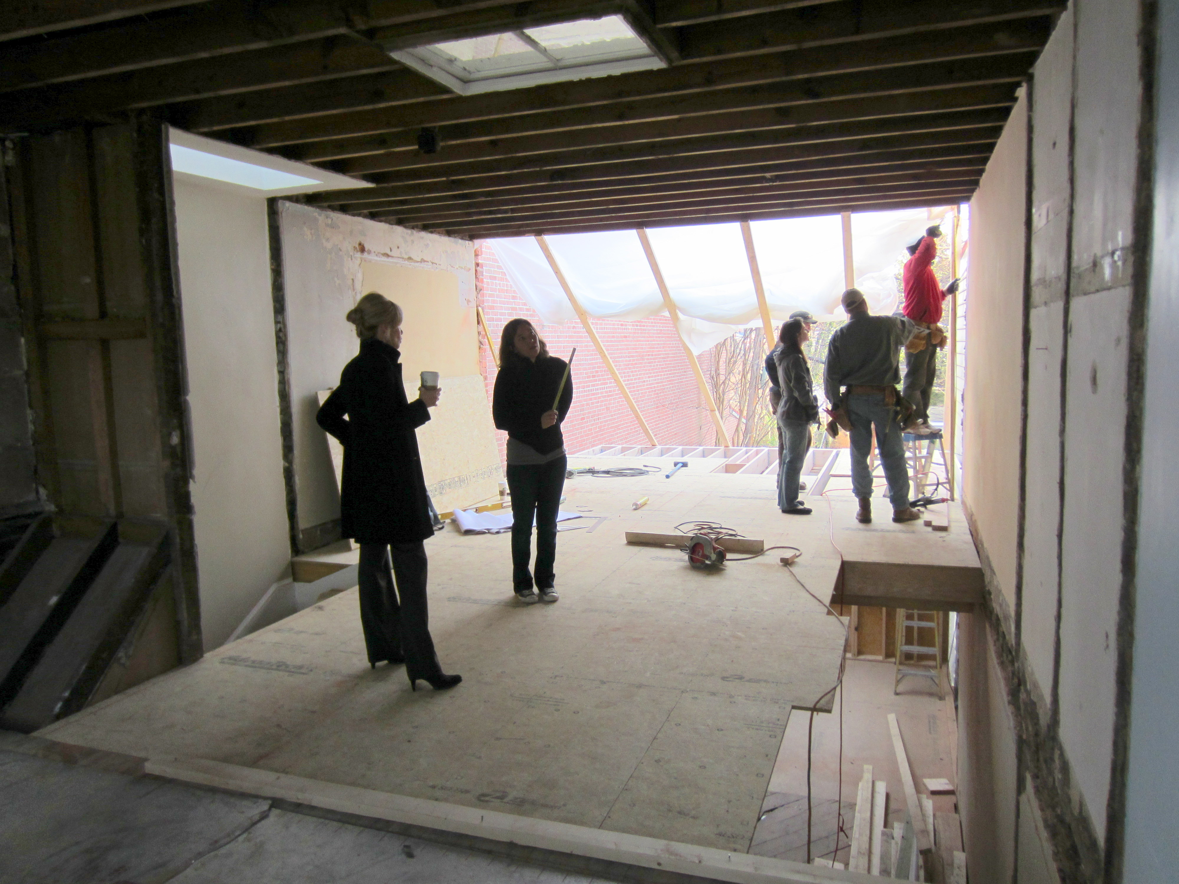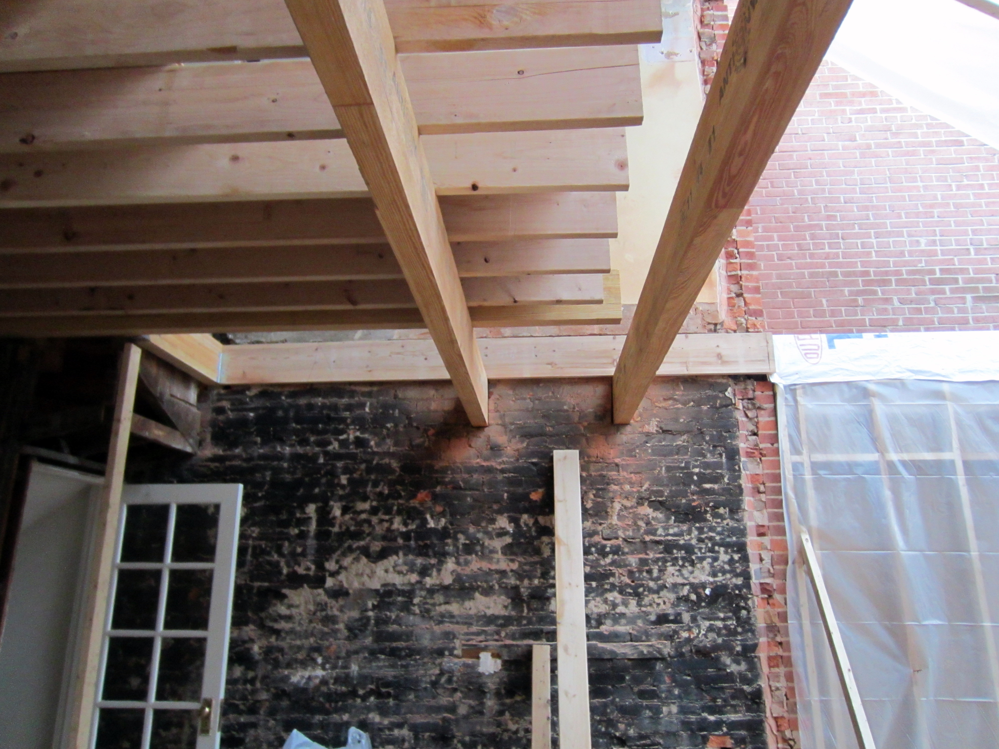 As noted in the previous post (https://wolfestreetproject.com/2012/03/31/transforming-the-first-floor-goals-and-design-plans/), the goal for the first floor is an open-floor plan with a list of specific design elements. The guys began framing the first floor to plan after the second floor was completed.