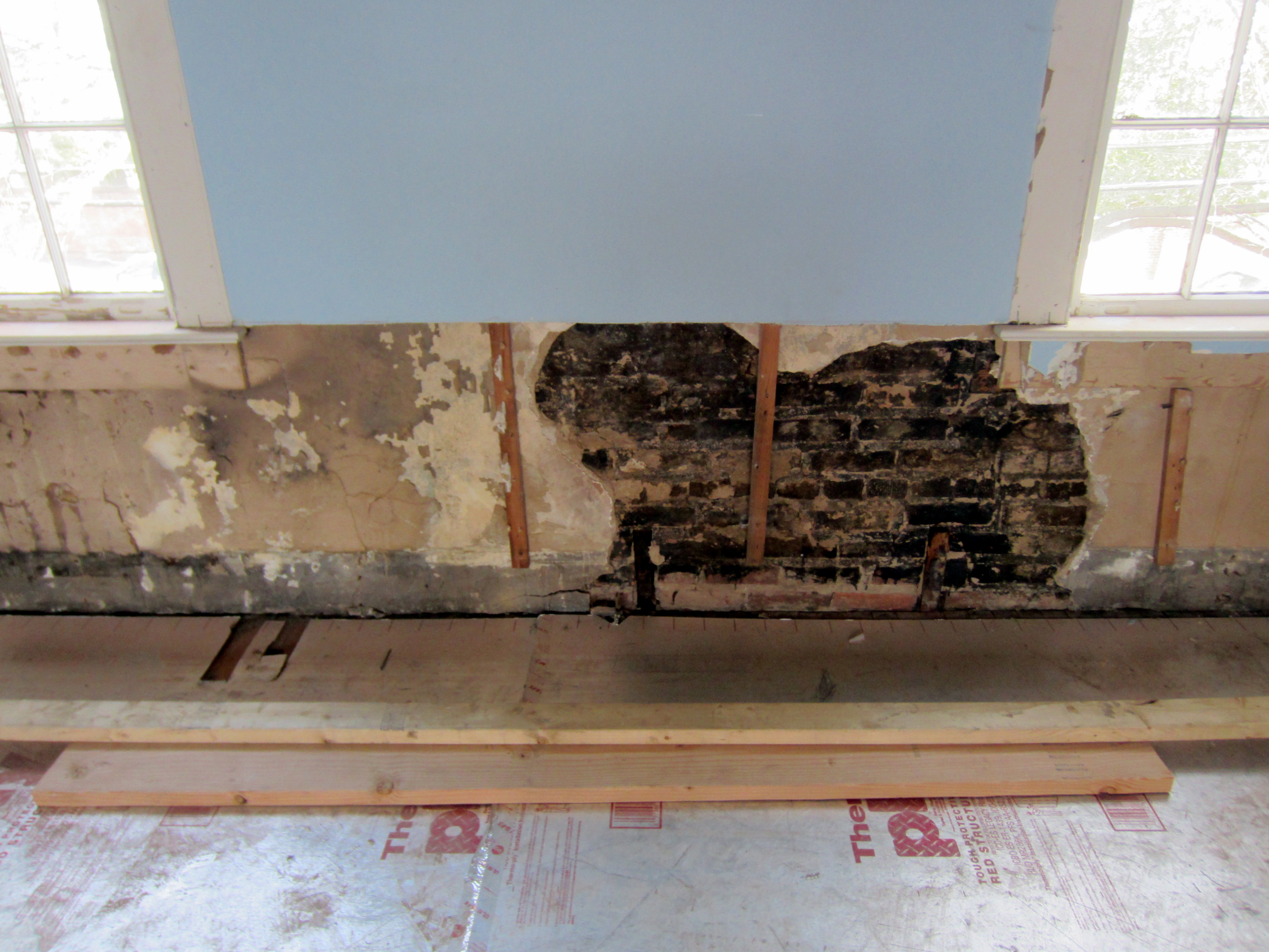 We’re still struggling with what to do with the brick walls. To get the black coating off and expose them properly, we’ll need to have the surface physically ground down, then the mortar repointed, which will required additional effort and incur additional costs. We’re waiting for a quote on this, then we’ll decide.
