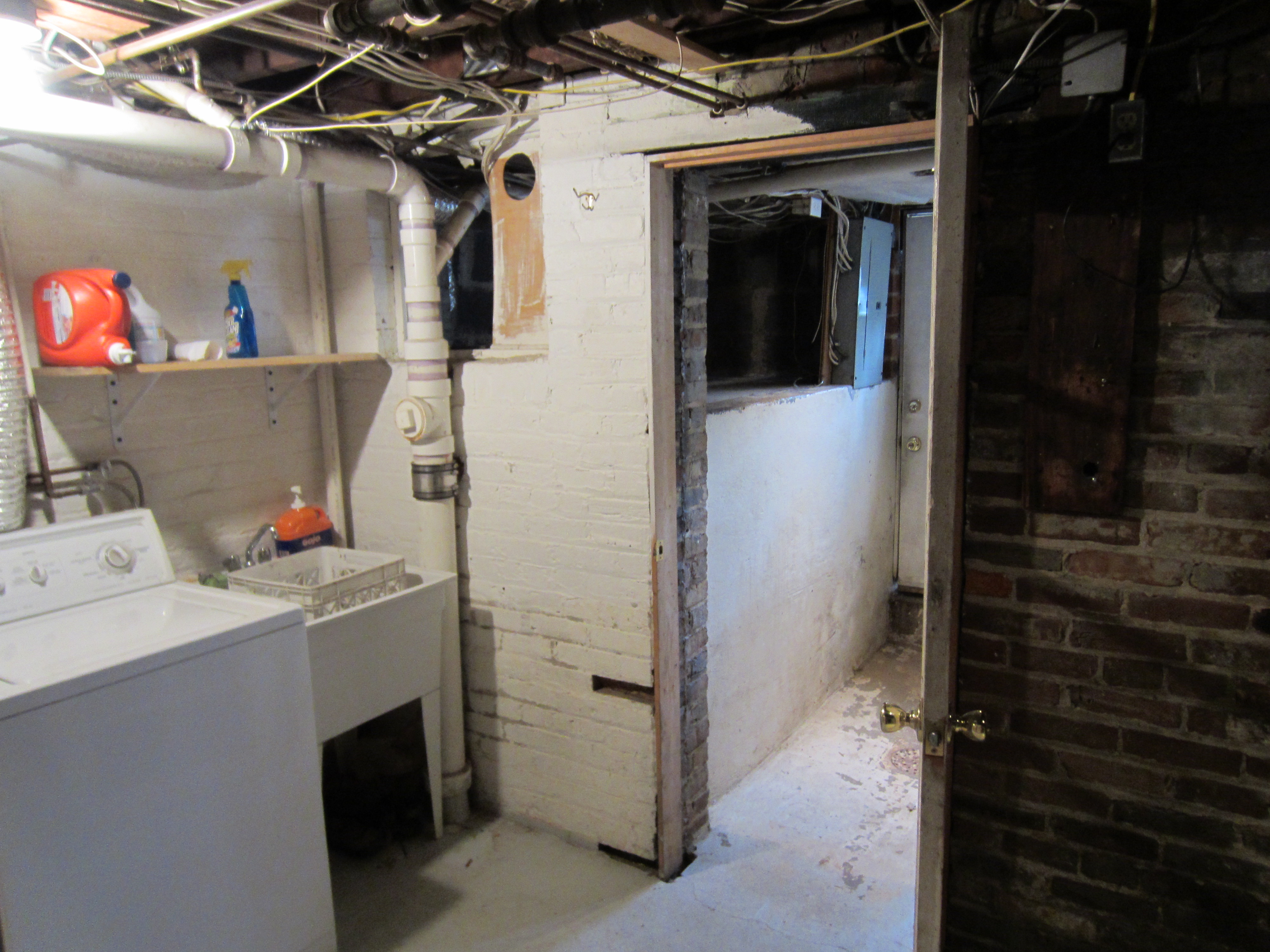 - Although not technically part of the kitchen, we also moved the sink in the powder room by the time of this sketch, since it originally was located against the brick exterior wall, and we didn’t want more pipes exposed than was absolutely necessary.