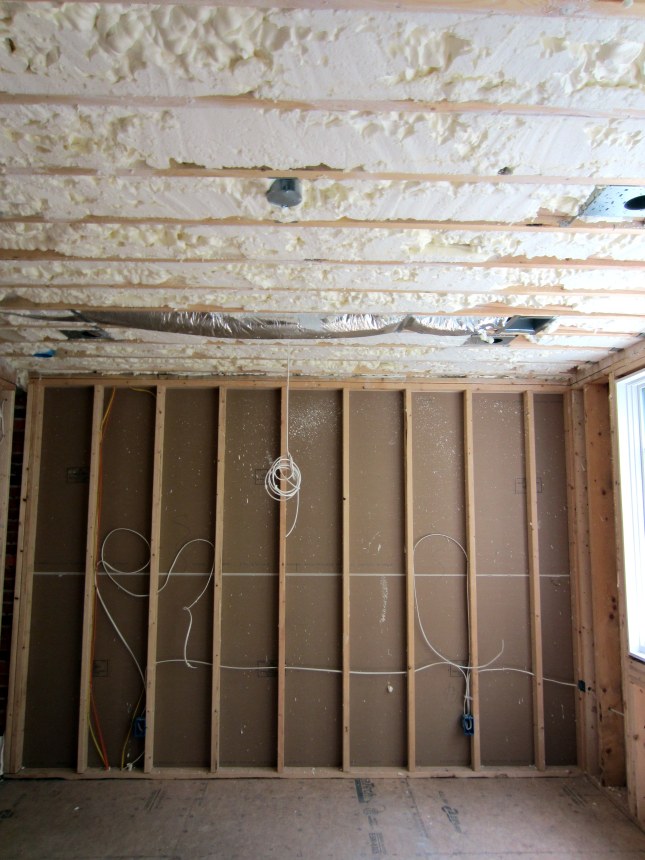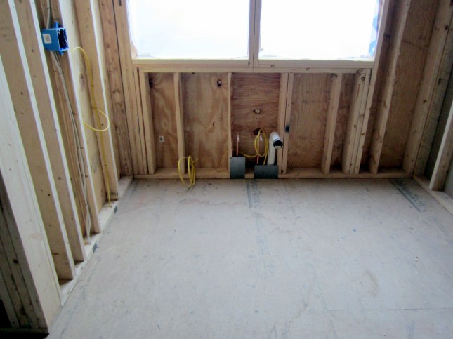 One of the last items we changed in the kitchen design (that cost us another few days in delays, but was totally worth it), was to add a drawer to the wet bar area. Up until a week ago, the design simply called for double cabinet doors under the counter. We realized that there was no where to store cork screws, bottle openers, tooth picks, etc., and made the change before it was too late. The drawer itself will be shallow (9″) because of the trough sink at the back, but there will be plenty of room for what we’ll use it for.
