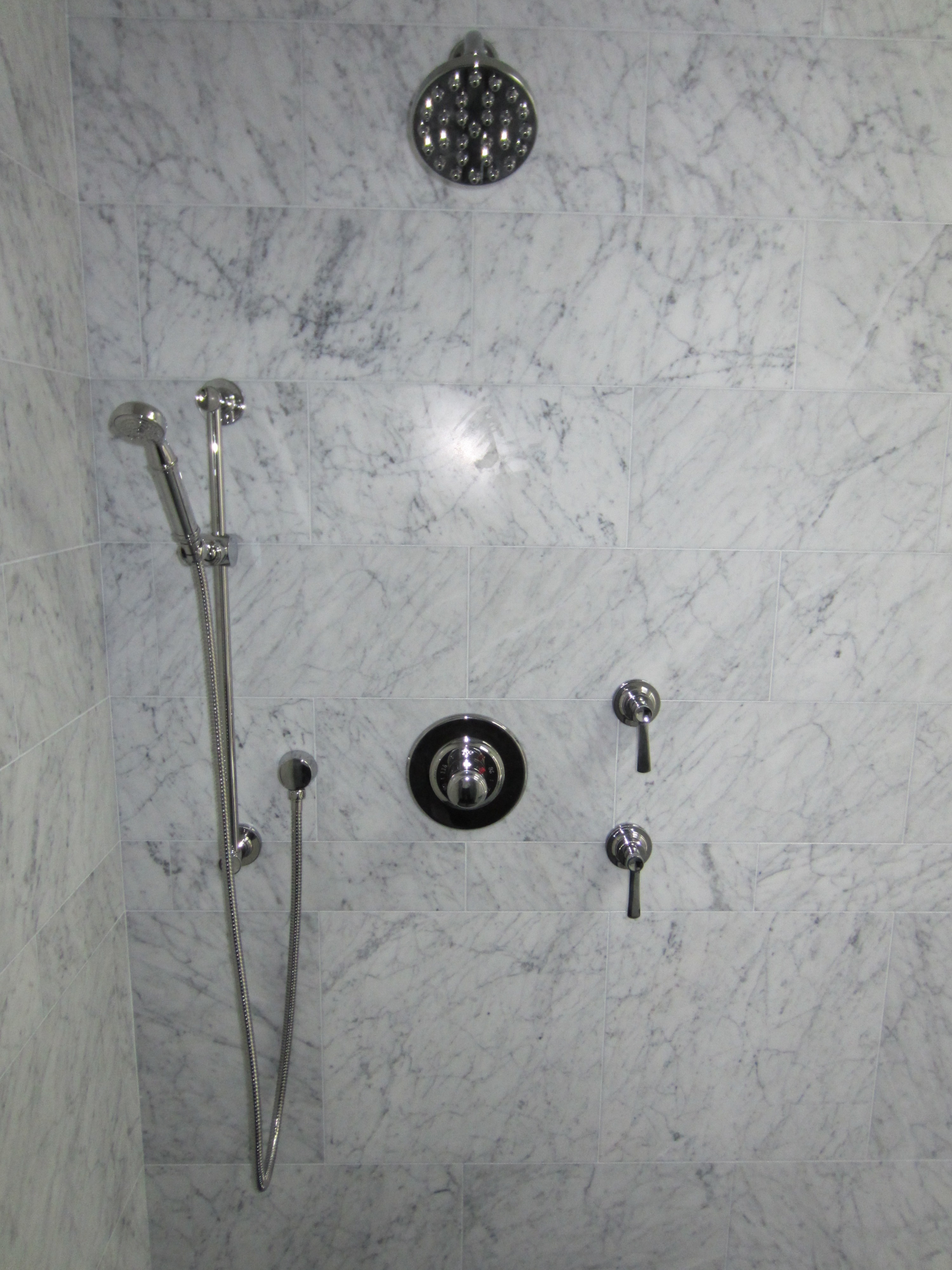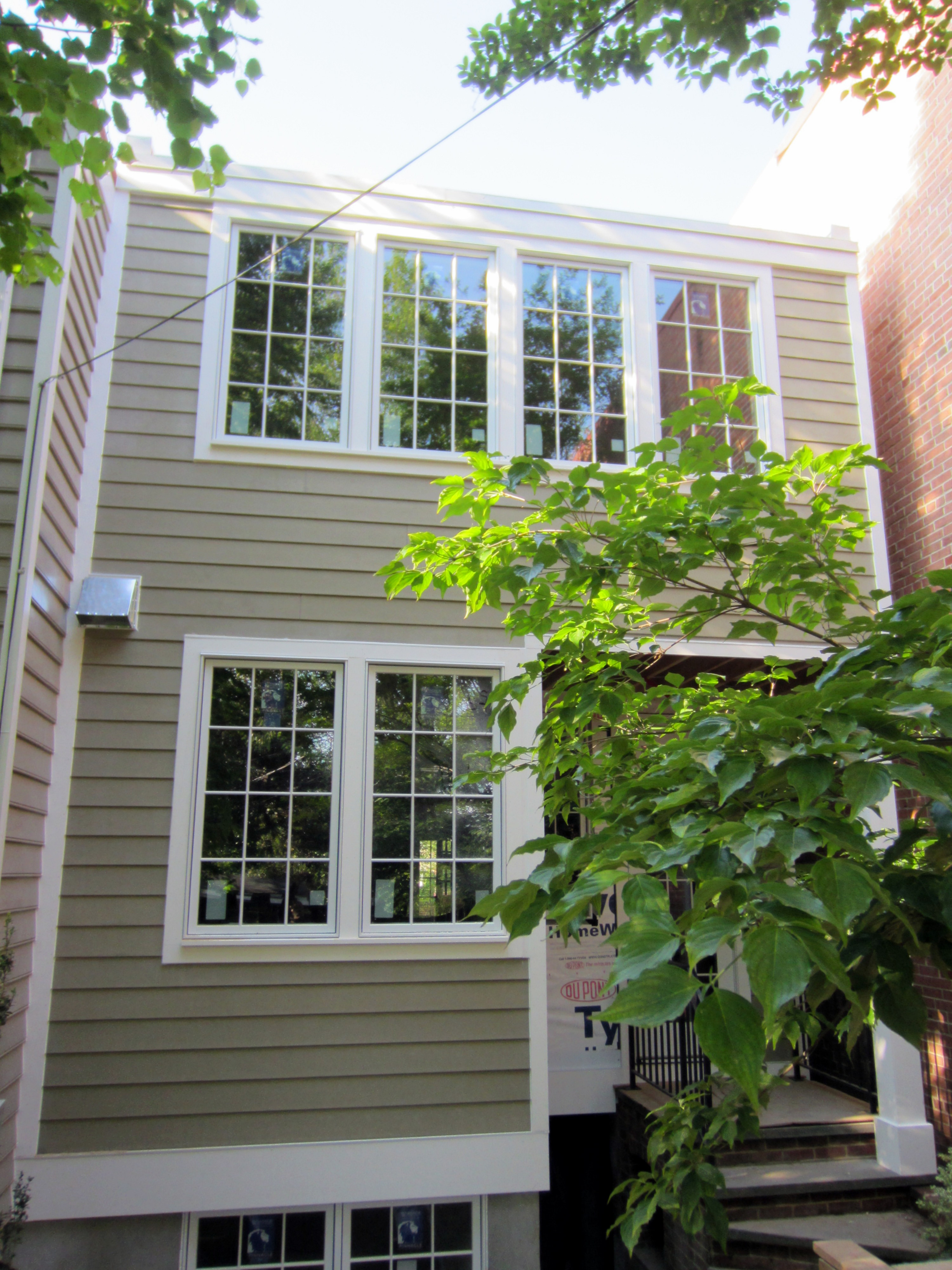 So, the GC’s exterior sub came up with a much better solution – a custom, rectangular, 3″ x 4″ downspout that would slot neatly between the corner and the vent and that would provide adequate capacity for the roof runoff. It worked beautifully: