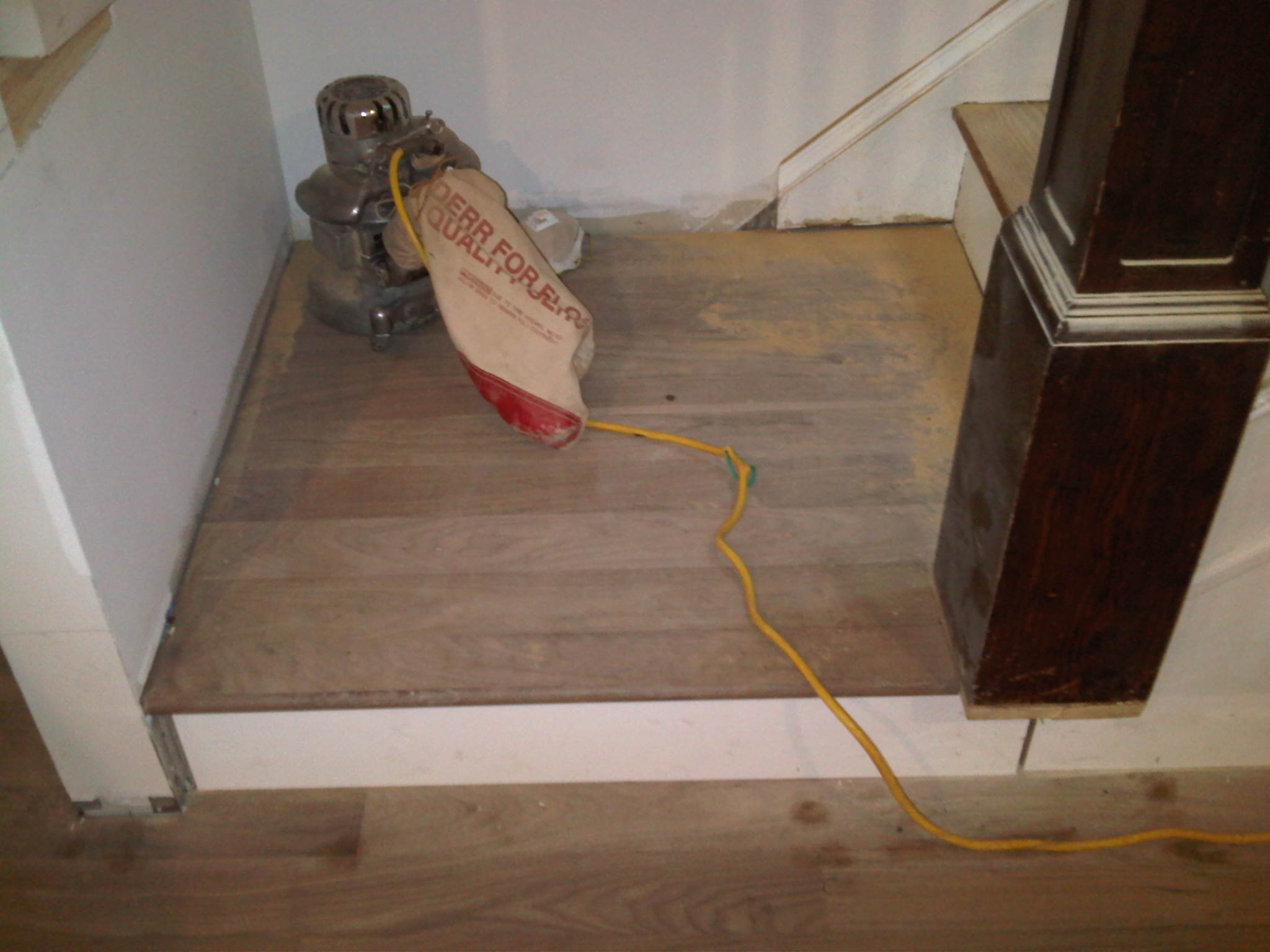 In the guest bath, floor tiling also moves forward. The electric mat also has been installed.