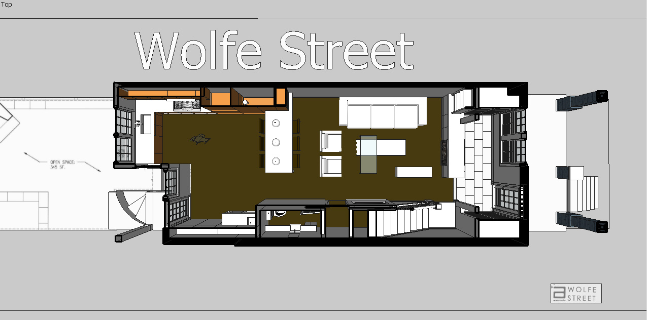 Although we had plenty of unforeseen issues and a few design changes along the way, the trauma and stress of the WolfeStreetProject definitely paid dividends – our design goals and functional living space aspirations, remarkably, were all met. One of the greatest additions (actually, a subtraction) by our second architect, Natalie, was the removal of the linen closet in the stairwell, noted by the red X above.