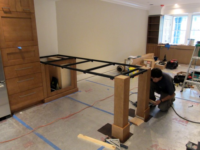 However, reaching this stage prompted some serious work – we needed to figure out how to insert and support a 600-lb slab of 2.5″-thick quartz counter top into the picture. The actual mechanics for doing this were never really addressed during design, so the time had come to tackle this challenge.