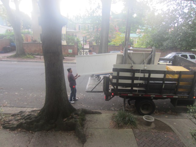 • Reorientation of the living room to have furniture along the east wall, rather than in the middle, as we had previously, due to the AV components being installed below the stairs. Some friends have called the new living area a Great Room, since it will be much larger than our previous, too-small living room. But, let’s be clear – this is not palace on a postage stamp in the suburbs; we’ve got a small townhouse in Old Town. There’s no way we’ll have a Great Room. So, we’ve dubbed the new room a Good Room . . .